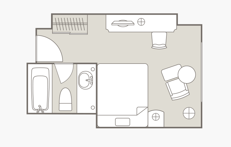 房間的佈局只是一個例子。面積和家具的配置、備品等根據房間而不同,請事先了解。