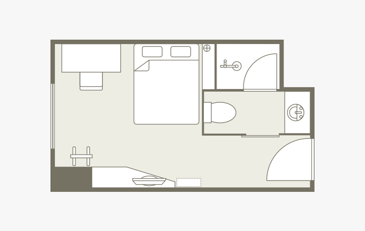 房間的佈局只是一個例子。面積和家具的配置、備品等根據房間而不同,請事先了解。