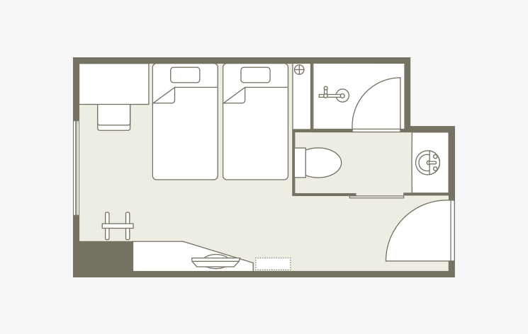 房間的佈局只是一個例子。面積和家具的配置、備品等根據房間而不同,請事先了解。