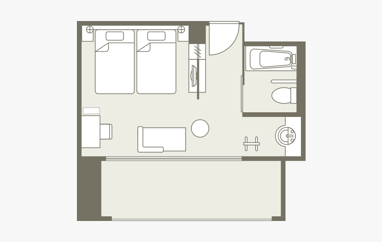 房間的佈局只是一個例子。面積和家具的配置、備品等根據房間而不同,請事先了解。
