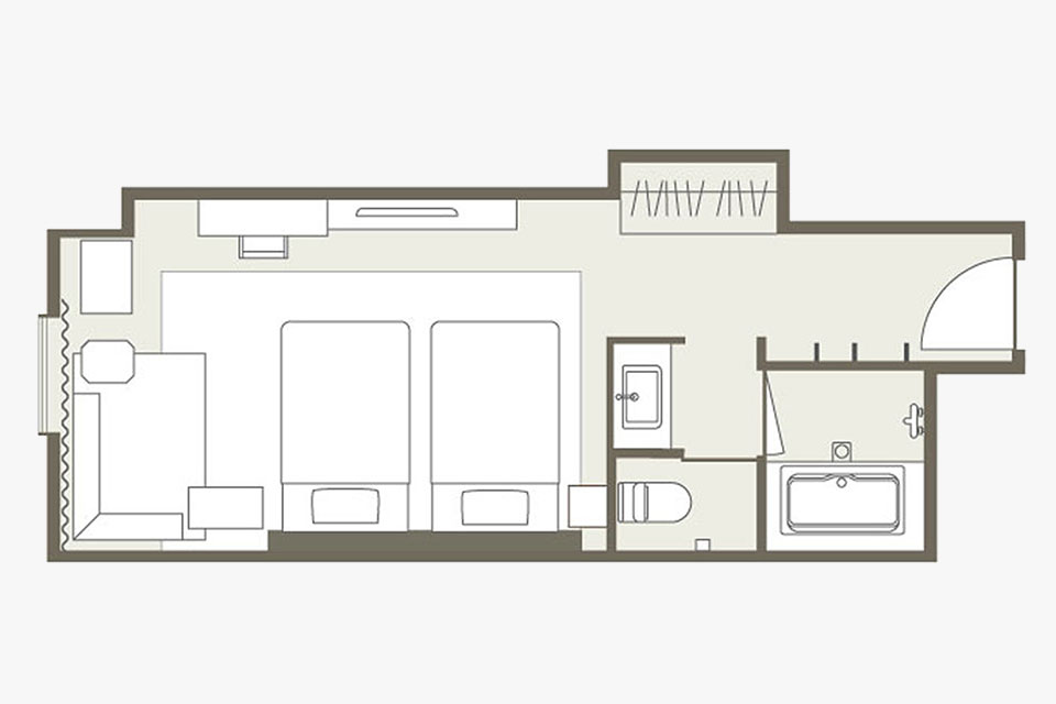 房間的佈局只是一個例子。面積和家具的配置、備品等根據房間而不同,請事先了解。