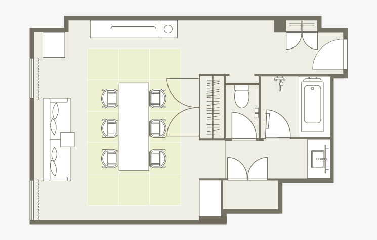 房間的佈局只是一個例子。面積和家具的配置、備品等根據房間而不同,請事先了解。