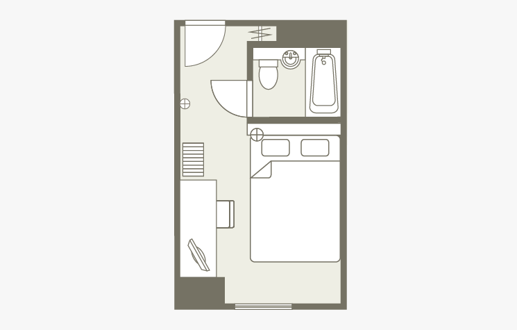 房間的佈局只是一個例子。面積和家具的配置、備品等根據房間而不同,請事先了解。