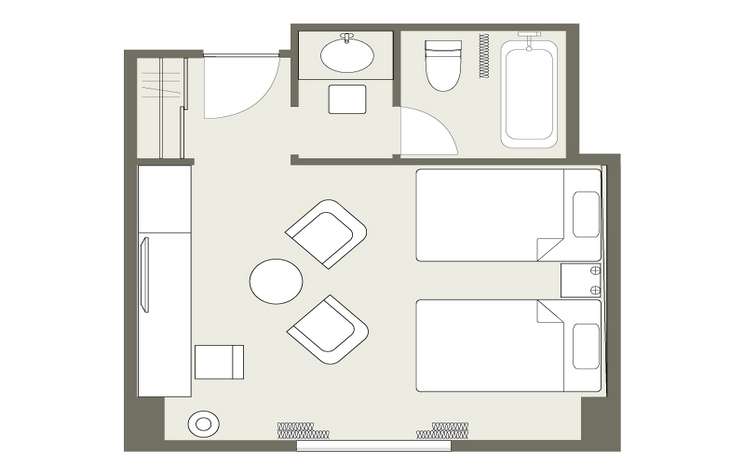 房間的佈局只是一個例子。面積和家具的配置、備品等根據房間而不同,請事先了解。