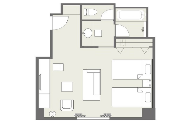 房間的佈局只是一個例子。面積和家具的配置、備品等根據房間而不同,請事先了解。