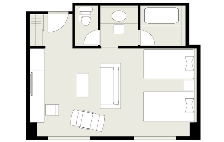 房間的佈局只是一個例子。面積和家具的配置、備品等根據房間而不同,請事先了解。