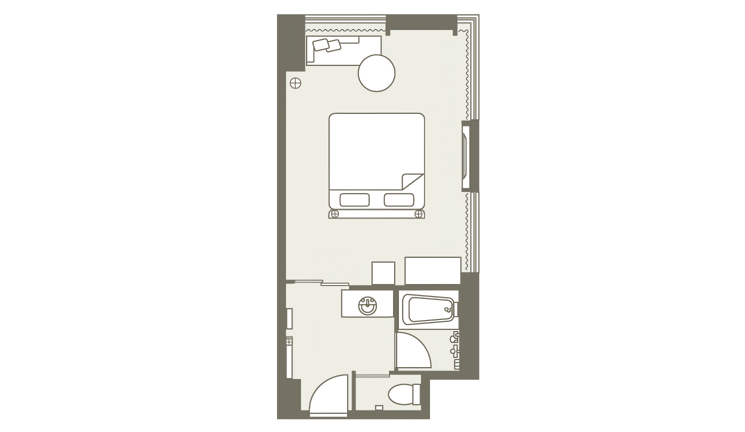 房間的佈局只是一個例子。面積和家具的配置、備品等根據房間而不同,請事先了解。