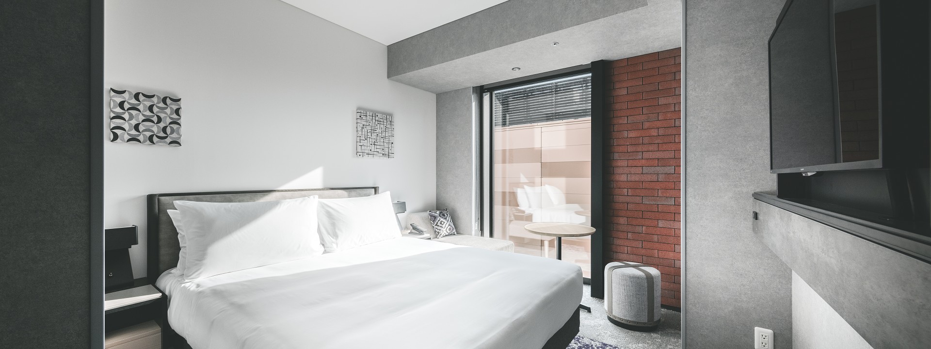 Lavender讓人聯想到田野和雪花的地毯,Hokkaido房間 以磚牆為點綴,這也是開拓的象徵。 牆壁藝術以札幌著名地標為主題。 為什麼不在城市裡尋找它呢?
