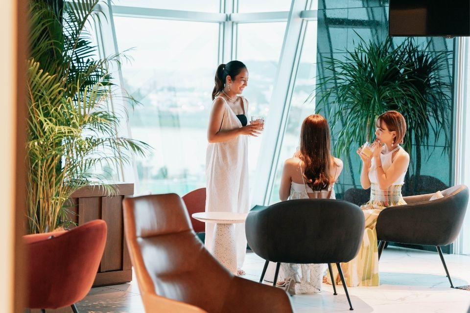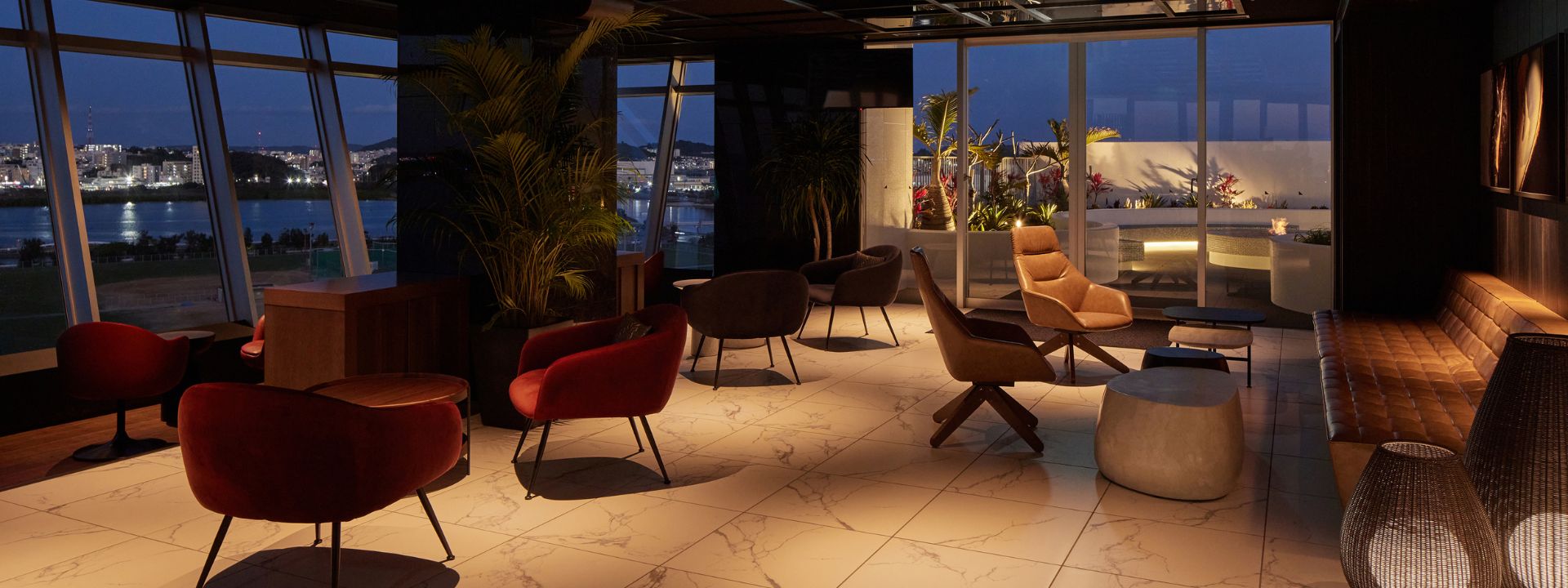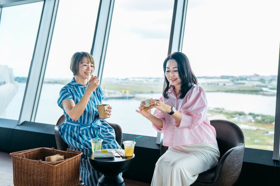 住宿客人可以免費使用的住宿者專用休息室“Sky Room”,是一個以控制塔為主題設計的空間,從軟飲料到酒類,都可以提供自助服務。