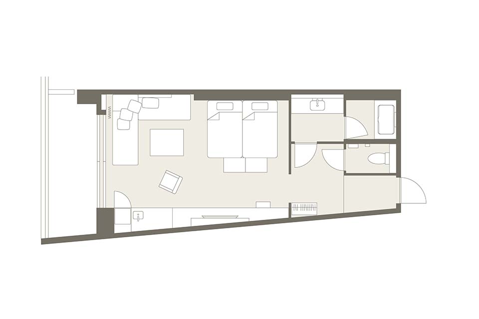 房間的佈局只是一個例子。面積和家具的配置、備品等根據房間而不同,請事先了解。