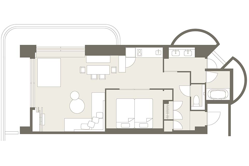 房間的佈局只是一個例子。面積和家具的配置、備品等根據房間而不同,請事先了解。