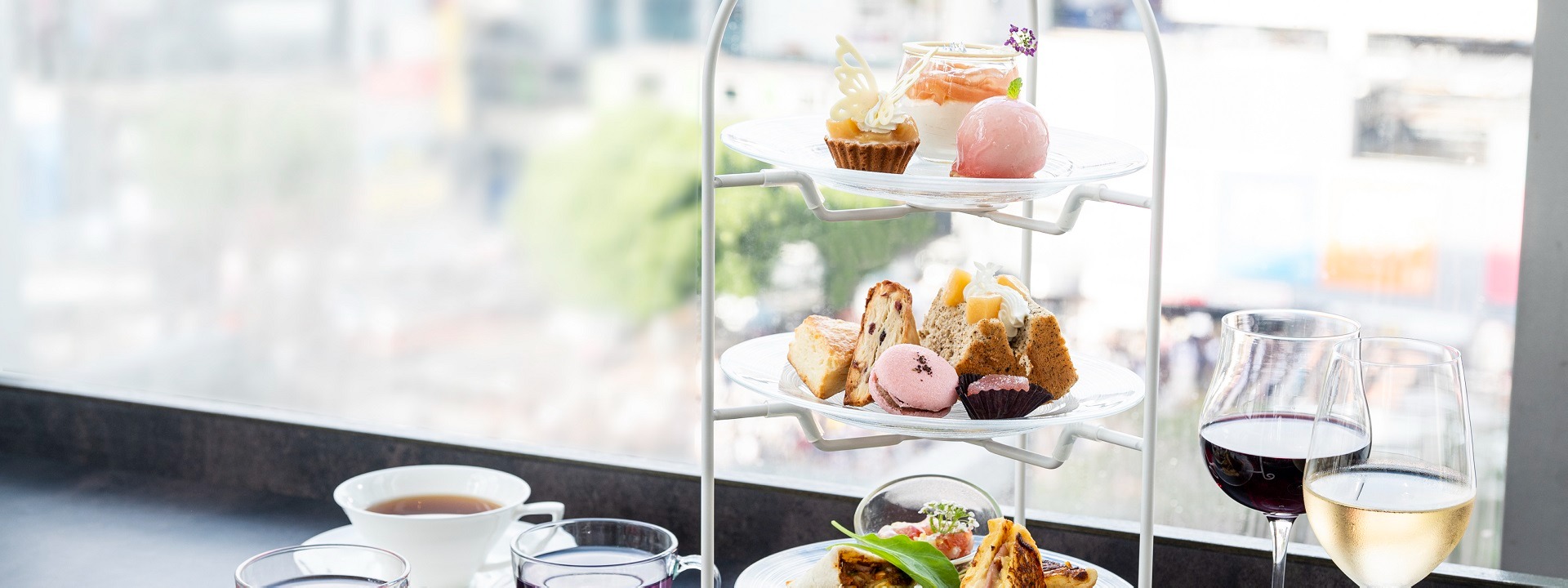 3 層茶攤提供由受過法國訓練的廚師精心製作的糕點師特製甜點和鹹味食品。