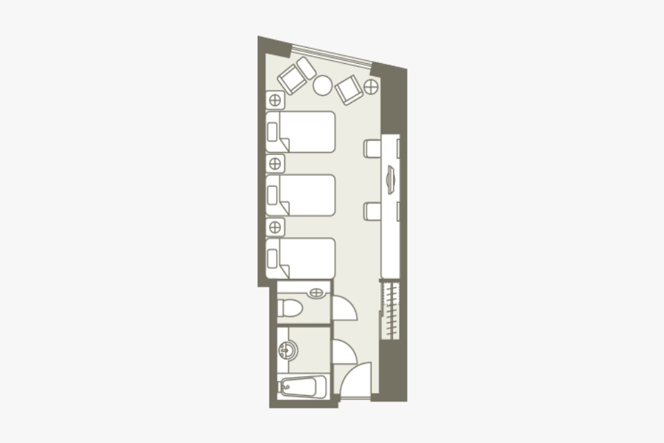 房間的佈局只是一個例子。面積和家具的配置、備品等根據房間而不同,請事先了解。