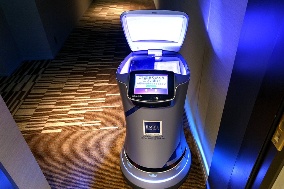 介紹送貨服務機械人“Relay”,為客房提供洗漱用品和家具。在引進最新服務、提高便利性的同時,為顧客提供驚喜、笑容和全新體驗。