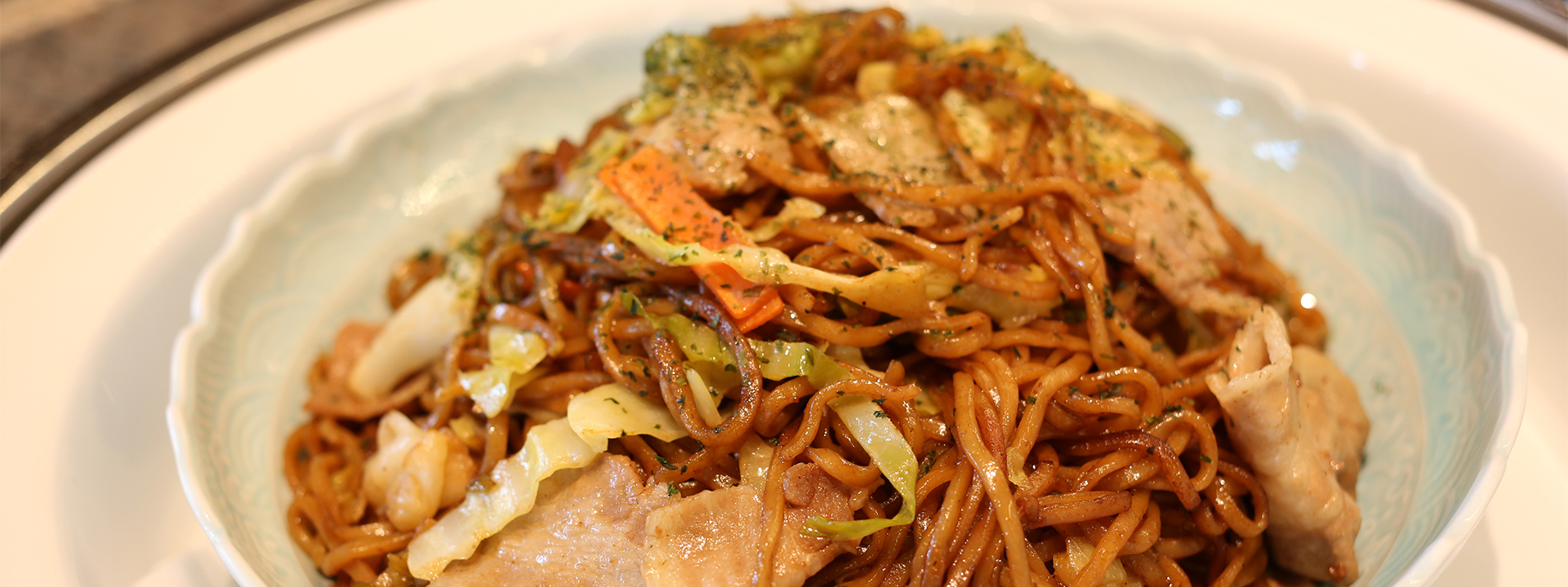 オードブル4品、洋風スープ、お味噌汁、サラダ、ライス、日替わりカレー、焼きそば、たこ焼き、エビフライほか