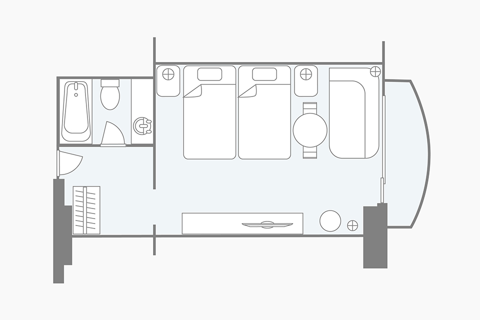 房間的佈局只是一個例子。面積和家具的配置、備品等根據房間而不同,請事先了解。