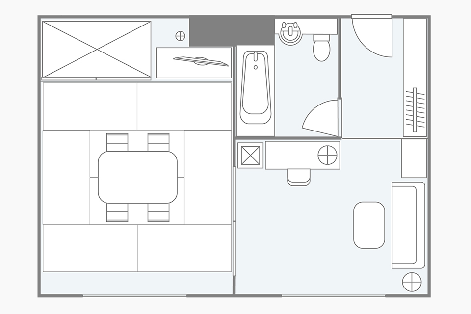 房間的佈局只是一個例子。面積和家具的配置、備品等根據房間而不同,請事先了解。