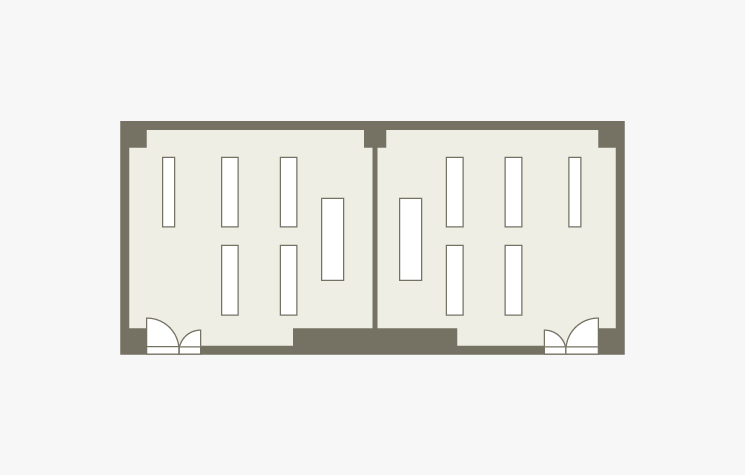 可用於會議、研討會、說明會、考場、各種聚會等多種用途。也可以根據用途進行分割使用。學校形式最多可容納 120 人,方形形式最多可容納 50 人,站立聚會可容納 100 人,座位聚會可容納 80 人。