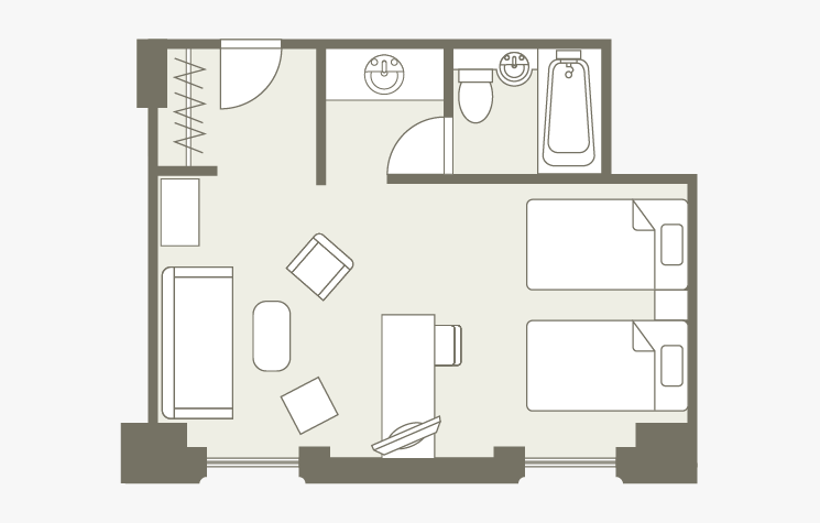 房間的佈局只是一個例子。面積和家具的配置、備品等根據房間而不同,請事先了解。