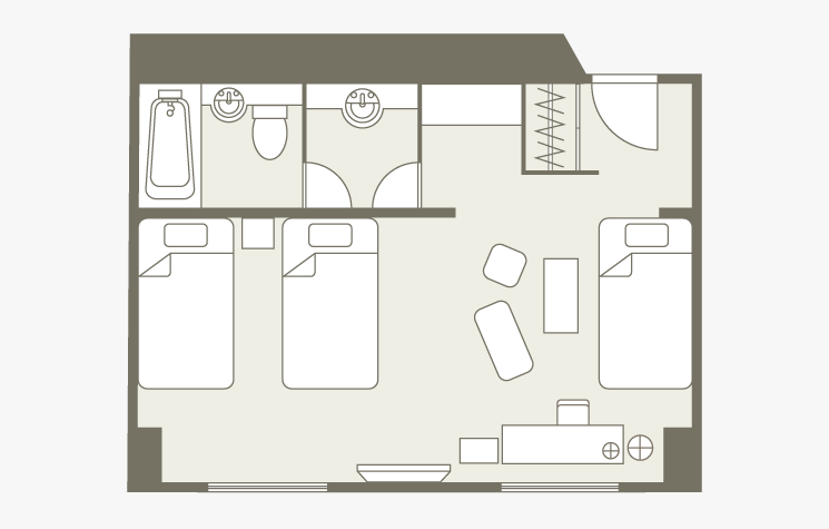 房間的佈局只是一個例子。面積和家具的配置、備品等根據房間而不同,請事先了解。