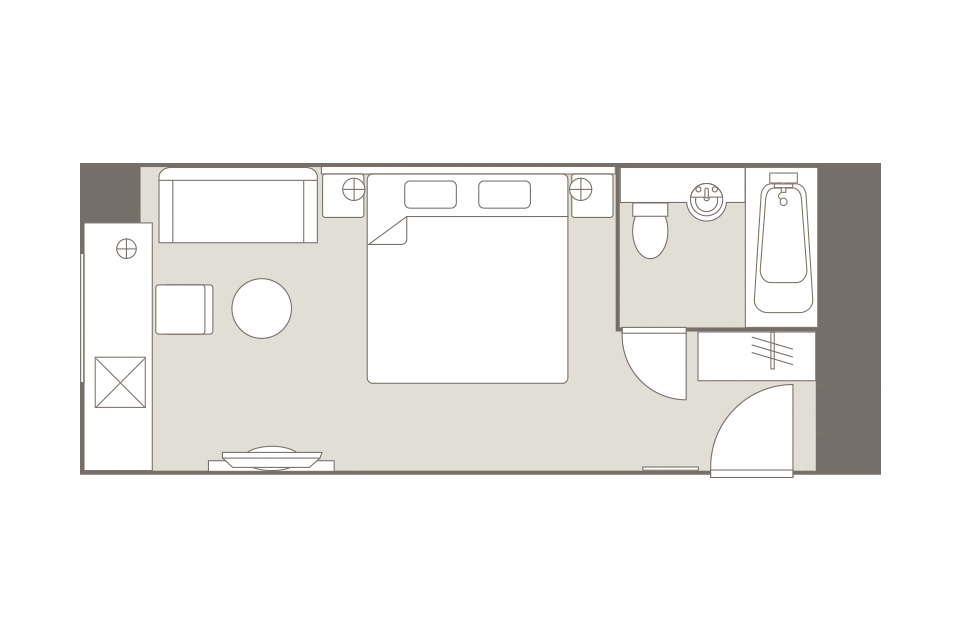 房間的佈局只是一個例子。面積和家具的配置、備品等根據房間而不同,請事先了解。