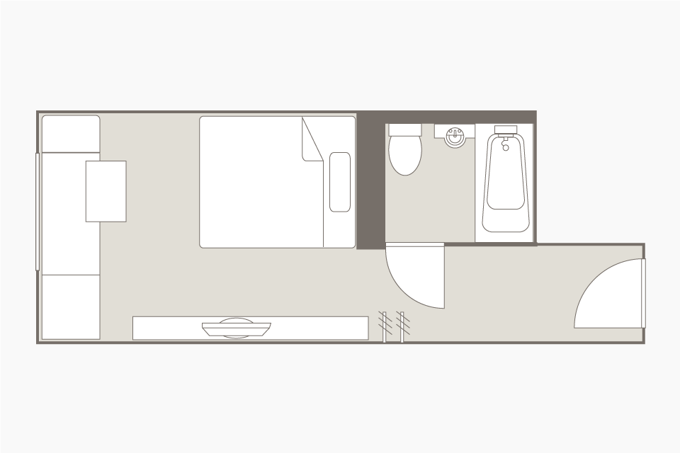 房間的佈局只是一個例子。面積和家具的配置、備品等根據房間而不同,請事先了解。